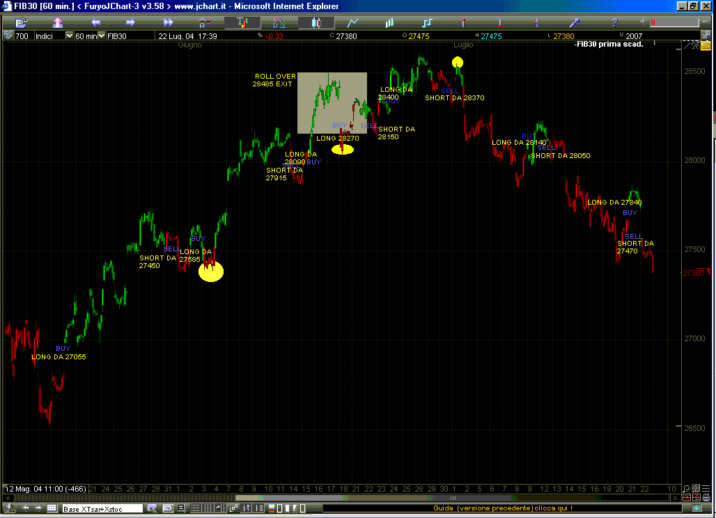 brutto scivolone che fa incamerare al sistema la perdita sino ad oggi piu' corposa...reversa short...vedremo alla fine anno per ora ha fatto piu' di 6000 punti fib..nel 2003 ha fatto 5000 punti fib e tutti entro agosto ma come sappiamo l'altr'anno e' stato molto difficile per i sistemi trend following a causa della bassa volatilita'..la massima escursione avversa ( mea)e meno di mille punti fib...direi molto buona per un sistema orario..anyway...questo e' un gioco che ha delle regole che bisogna saper accettare...il daily sempre short