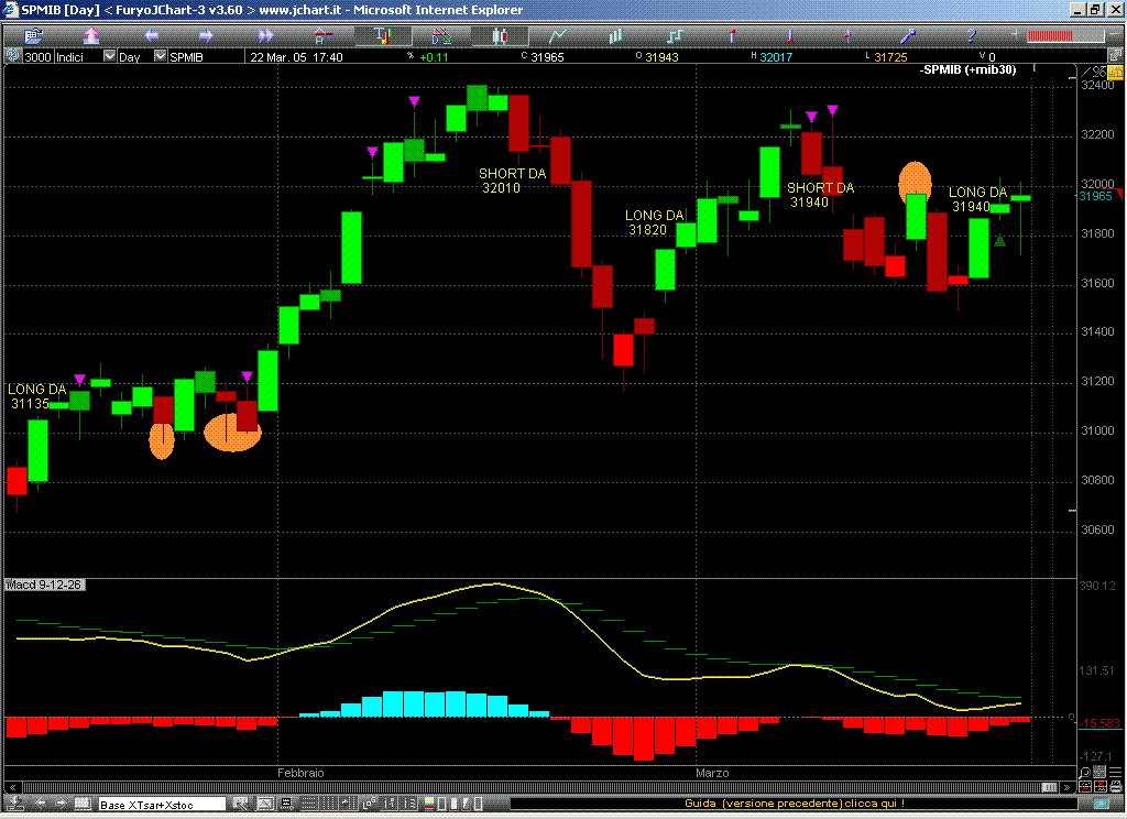 operativamente il segnale e' entrato long a 31875 sul future di marzo chiuso giovedì 17.40 a 31655...aperto long contemporaneamente a 31185 sul contratto di giugno..a tutt'oggi si puo' calcolare il gain del segnale sul relativo indice...