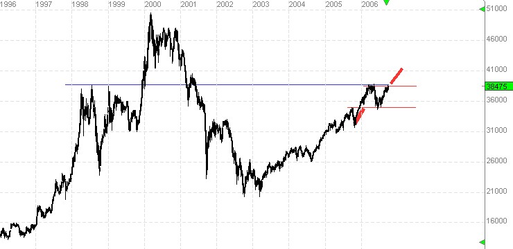 Ti allego un grafico co una analisi un po' alla carlona. Questo livello parrebbe una forte resistenza, però avrei paura di un'altra gamba rialzista (quella che ho segnato con la linea rossa più grossa).