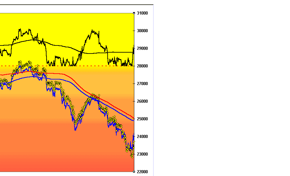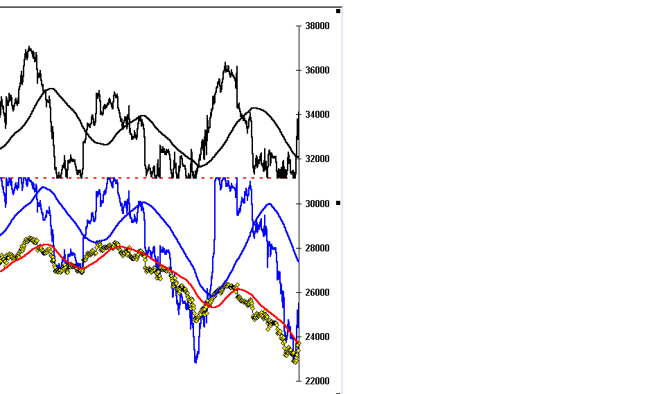 indicatore nero  =indicatore del ciclo a 30gg. e la linea che lo attreversa